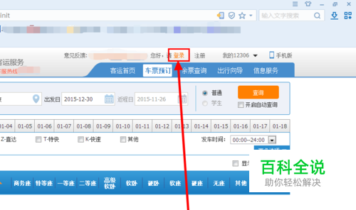 打开12306官网订票网页,然后点击页面顶部的“ 登录”选项。