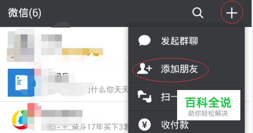 首先我们打开手机微信,然后进入到手机微信的主界面,点击右上角的“+”号,在下拉中选择“添加朋友”