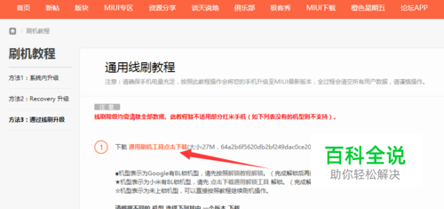 小米5线刷救砖的具体方法: 首先,直接进入小米线刷网页界面,从中下载“MiFlash线刷工具”和“小米5线刷包”,如图所示: http://www.miui.com/shuaji-393.html