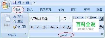 找到【开始】选项卡下的【字体】,如图:
