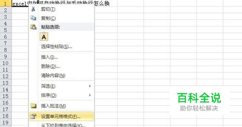 1.如何自动换行 选择要自动换行的文字单元格,右击-》设置单元格格式。