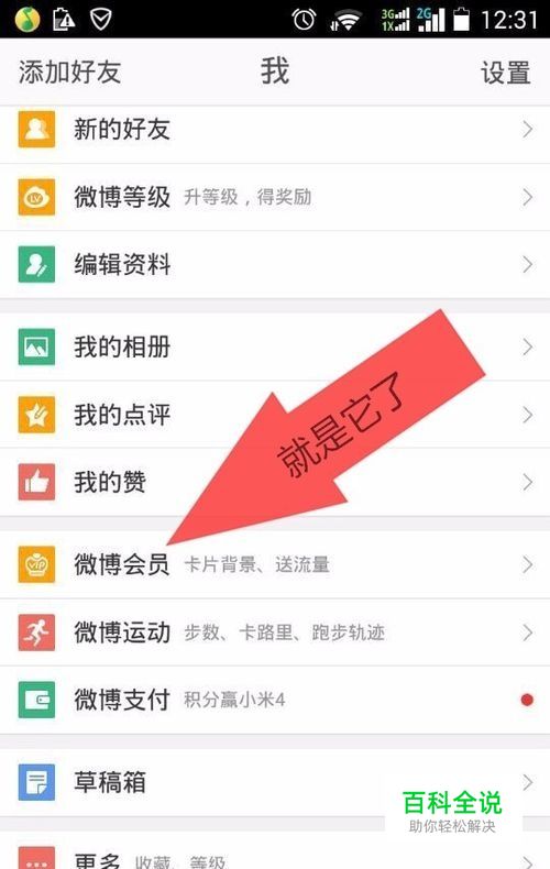 点击菜单“微博会员”