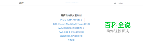 拉到底部找到“iPhone 6s 意外关机问题计划”点击进入下一步
