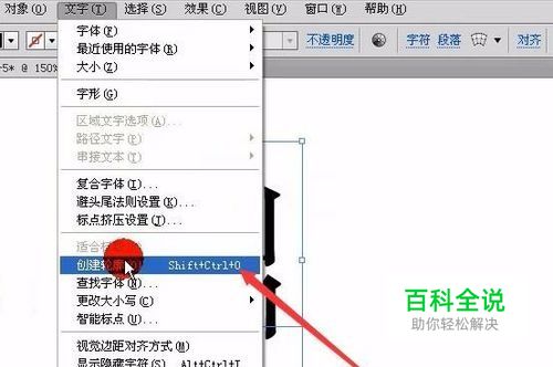 在工具栏中选择“文字”中的“建立轮廓”,如图: