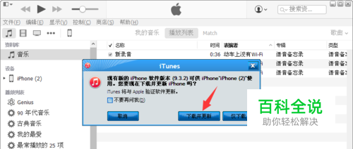 每当使用iTunes软件,将iphoen手机连接到电脑开启iTunes软件,如果手机系统出现更新,在上面都会有提示出现,(如图显示)直接按一下下载并更新即可。(注意一下,整个过程别拔掉数据线以及使用iphoen)