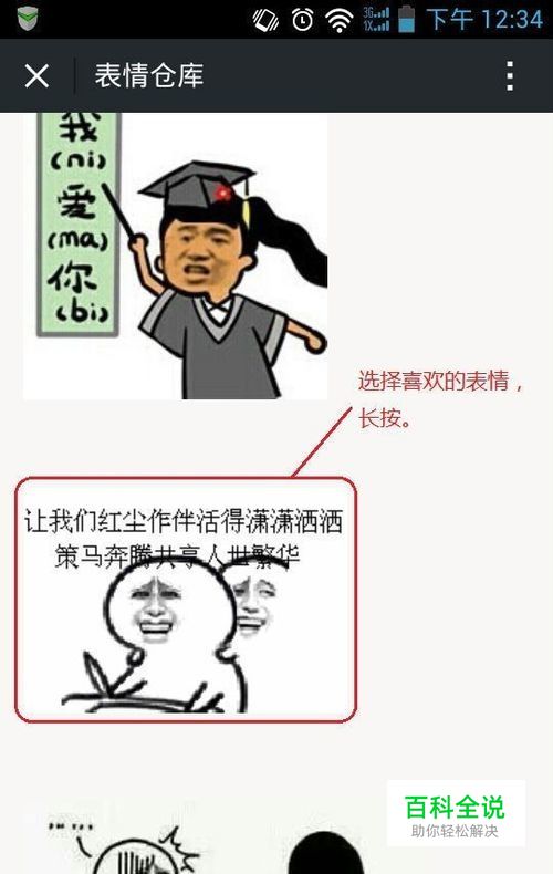 首先选择自己喜欢的表情,长按保存到手机;