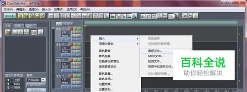 因为舞蹈背景音乐需要需要把多收MP3分割成若干小段然后再组合起来。任务来的快时间紧张,搜索了很多软件用起来都不理想。很多好用的免费的有限制,必须购买才能享受其他权限,对于我这样的人来说一年估计就用着一次,所以没必要购买。功夫不负有心人,找到了cool edit pro功能方面很全,用来切割合拼只能说大材小用了。话不算多看看如何切割吧···· 1.启动Cool Edit Pro 2.0或2.1中文版(以下简称为Cool Edit),在音轨上点右键选择插入-音频文件。也可以直接拖动任意的音频文件到Cool Edit中。
