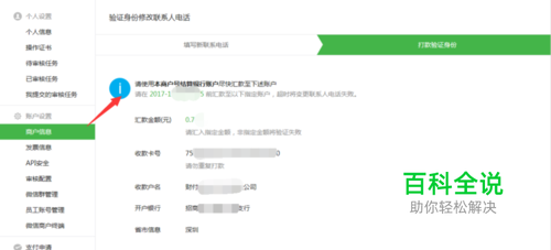 填写了修改信息之后,因为比较关键所以需要“本商户号结算银行账号”汇款到腾讯指定的银行账户,用于验证身份信息,验证完成之后汇款会返回原来的“本商户号结算银行账号”