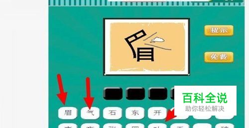 在我们进行游戏的时候,下图方框中眉毛的眉字上部分翘起,在上部分和下部分之间好像吹了一口气,我们可以理解为扬眉吐气。在我们依次点击扬、眉、吐、气后,这一题就完成了。