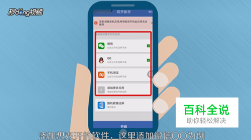 添加想要双开的软件。以添加微信QQ为例。