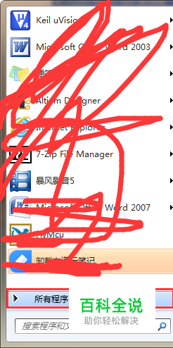 打开开始菜单,找到“所有程序”;如图所示。