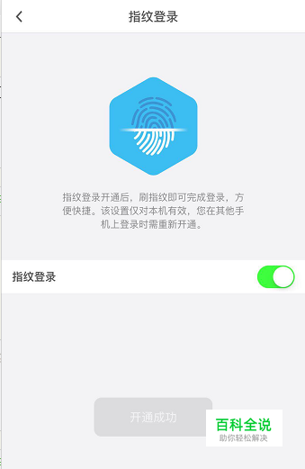 输入你手机收到的验证码,指纹登录开启成功,如下图所示,