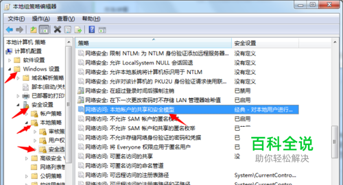 更改网络访问模式 开始→运行→gpedit.msc→计算机配置→windows设置→安全设置→本地策略→安全选项→网络访问:本地账号的共享和安全模式→更改(仅来宾-本地用户以来宾身份验证)为(经典:本地用户以自己的身份验证)