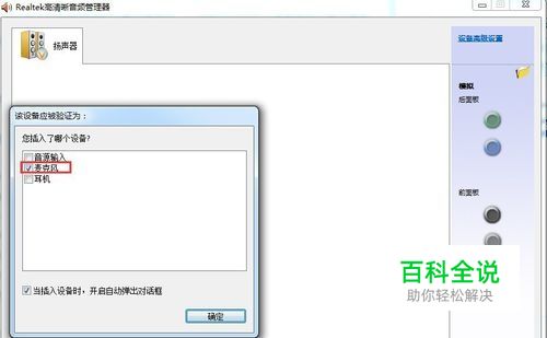 不同的声卡控制台不一样,这里使用的是比较常见的realtek声卡,将麦克风连接到主机后声卡音频控制台会自动检测到麦克风