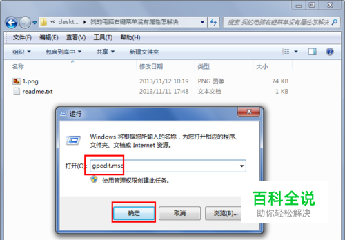 打开的运行程序如下图所示,在打开后面的输入框中输入gpedit.msc,然后回车或者点下面的确定按钮,执行gpedit.msc程序