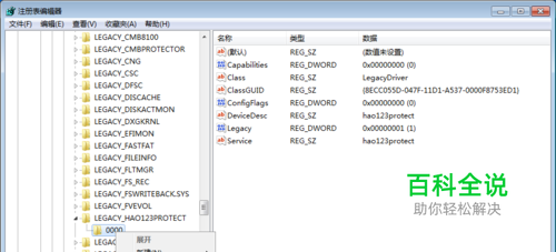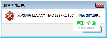 找到要删除的注册表项,以删除注册表项【LEGACY_HAO123PROTECT】为例,会提示删除项错误等信息。