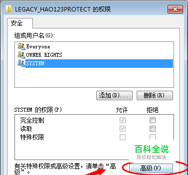 在这个注册表项上右击,点击权限菜单项,打开这个注册表项的权限界面,点击高级按钮。