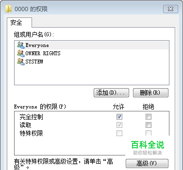 把Everyone的完全控制权限打上勾,然后确定退出设置窗口。这时再删除刚才的注册表项就可以了。