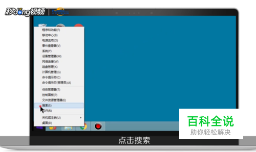 方法二:鼠标右键单击“开始”菜单处,点击“搜索”