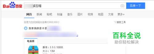 安装解压缩软件: 如图所示在搜索引擎输入图中关键词,下载后双击文件进行安装。