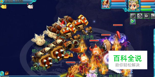 战斗杀完了就到来了BOSS战斗。 BOSS战斗。主怪打不动。打的话只有1点血,当然你身边还有系统给的凌霄。天机城门派的人。对面怪物都很弱。小怪2个BB打下去基本上就死一个。可是主怪还是会召唤。 杀法:当凌霄变身以后说他来牵制住对面的机关人的时候就可以杀主了。只有说这句话的时候可以杀主。一定要把握好,不然又要等凌霄再次变身才可以杀主了。如果凌霄牵制住机关人以后那个回合你没有杀死主怪。就还要等2个回合凌霄变身后他说话牵制住了再继续杀。总的来说难度不大。但是玩的是技巧