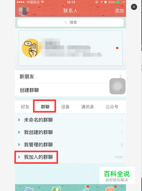 2、在联系人页面选择群聊,打开我加入的群聊。