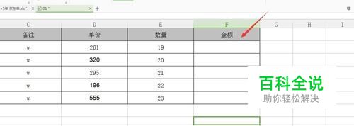 在金额下面的第一个单元格中首先输入=等于号 这表示我们要求这个单元格中的数值了。在表格的上方有一个编辑栏,这一行的显示内容跟单元格中的内容是一致的,而且更加好观察,可以在编辑栏中进行输入计算。
