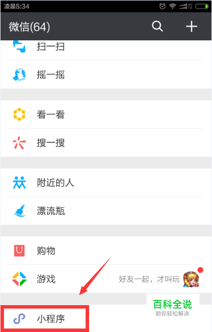 点击进入微信,发现界面拉至最下端,点击【小程序】