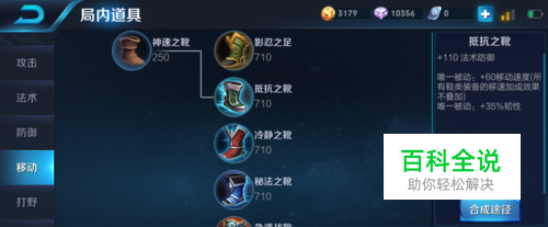 第一件先出魔抗鞋,关羽基本上就是上路或者是拿来游走的,先出鞋子肯定是很有用的啊,而且性价比很高的就是鞋子