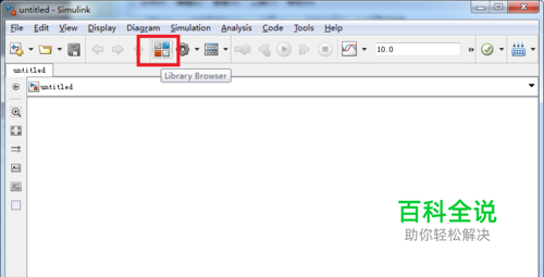 第二步:此时将进入如下图所示的Simulink界面,我们点击工具栏中的【Library Browser】,如下图所示。