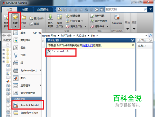 第一步:我们打开MATLAB软件,然后在命令窗口中输入simulink或点击左上角的【新建】,然后选择【simulink Model】,如下图所示。