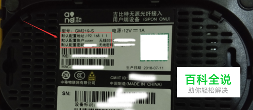 在路由器背面找到“默认配置地址”“默认配置账户”以及“默认配置密码”等参数。