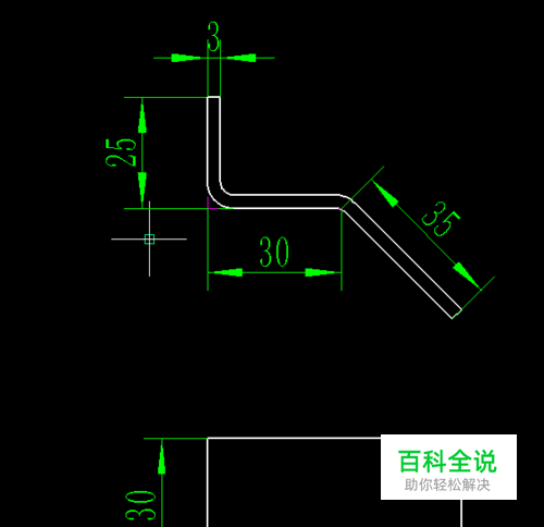 图中84.854就是钣金件展开的总长,再根据俯视图显示的宽度尺寸30,零件的展开图如下: