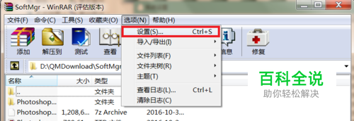 7z Archive或.7z格式的文件其实是一个压缩文件,首先打开我们常用的解压软件WinRAR,点击“选项”,在下拉菜单中找到“设置”点击或者直接快捷键Ctrl+S进入设置选项卡。