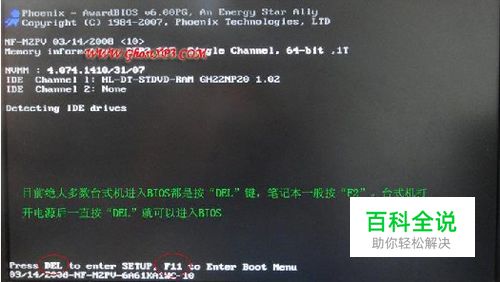 将BIOS设置调成光盘启动的方法(不同主板有所不同),通常有三种方法进入,一种按“DEL”(最为常见的),另一种按“F2”,还有按“F10”,具体请看购买时的说明书。