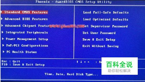 1、开机,并按住DEL键(不同机器有所不同,有些机器是按F2键)不放,直到出现BIOS设置的蓝色窗口,“图一 图二”