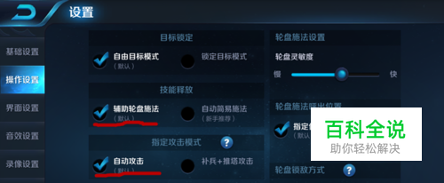 下面是操作方式设置。 推荐从新手就用轮盘方式,不然不好改。 选择显示可攻击的对象,想打谁点他的头像就行了,再也不怕玩猴子敲错人了。 攻击方式的话推荐自动攻击,如果玩射手的话选补兵加推塔。