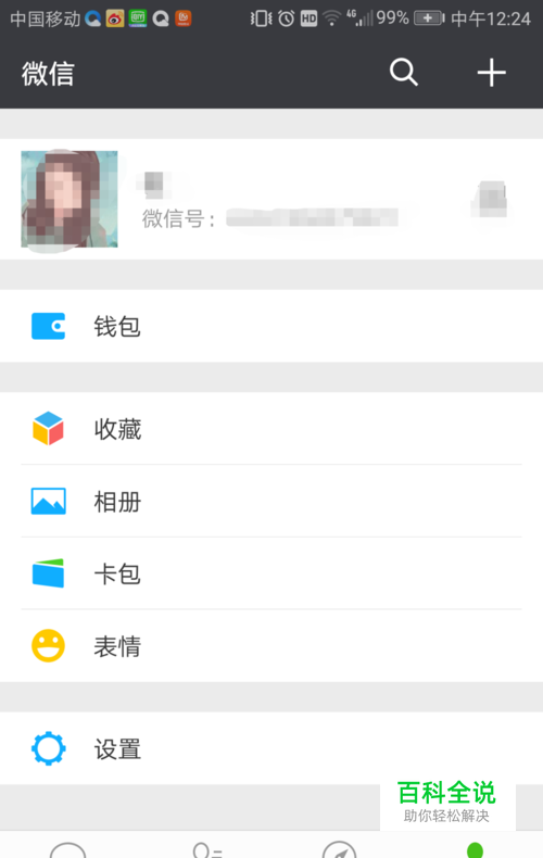 打开微信中的 我,点击设置