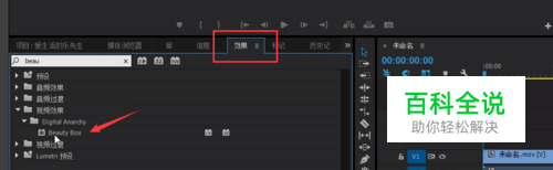 1、选中视频素材-效果-双击Beauty box