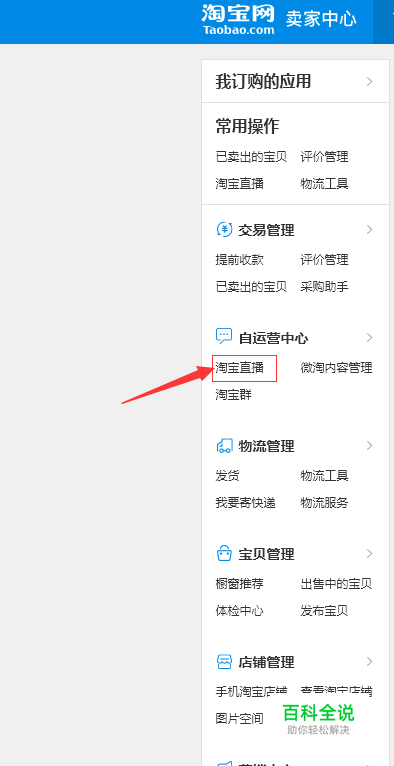 首先打开卖家中心,在左侧下拉列表找到淘宝直播。