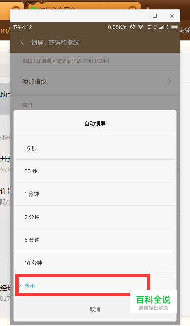 在这里有 15秒 30秒 1分钟 2分钟 5分钟 10分钟 和永不