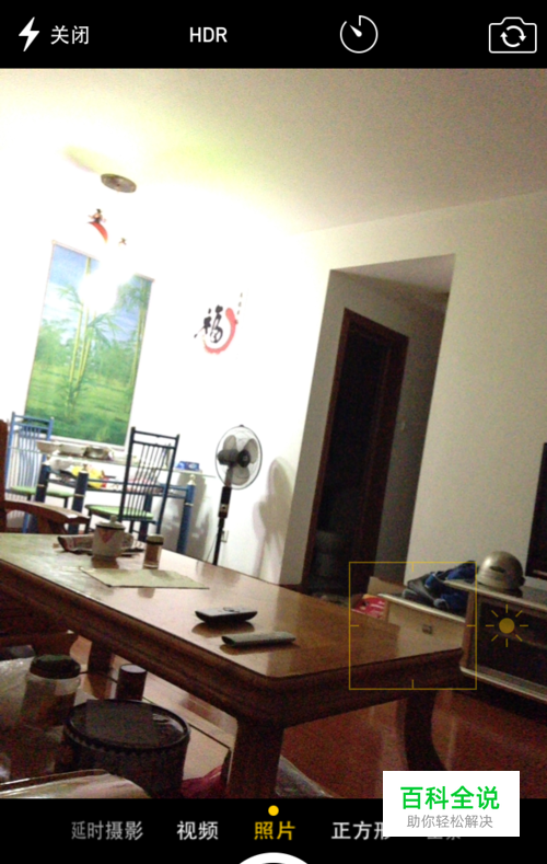在过度曝光的情况下,不急不慢,点击了屏幕上方的HDR功能。HDR文字变成黄色代表开启了此功能。