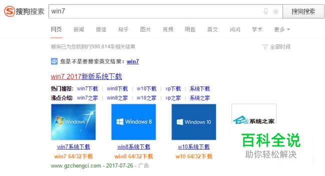 首先在浏览器搜索下载自己笔记本电脑的系统镜像,例如搜索‘win7’进入系统之家下载。