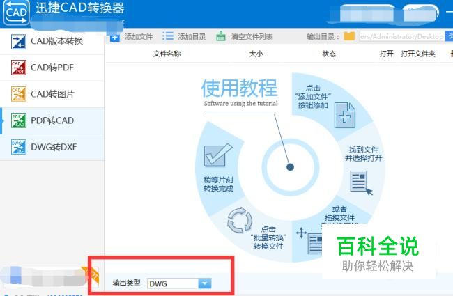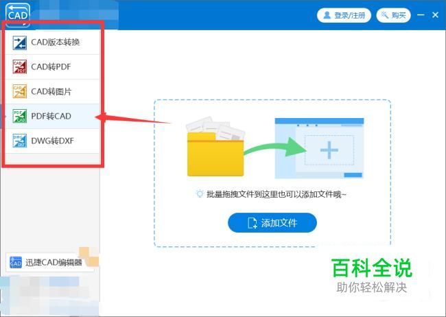 在界面左侧选择转换类型,这里选择pdf转CAD;