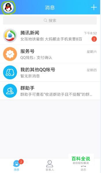 打开手机QQ,进入主界面,点击左上角个人头像。