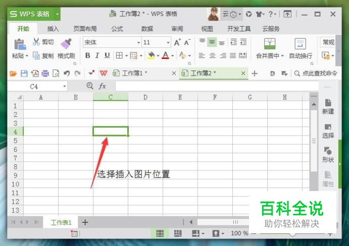 打开软件后,首先选择需要插入图片的单元格位置,鼠标左键点击确认,如图所示:
