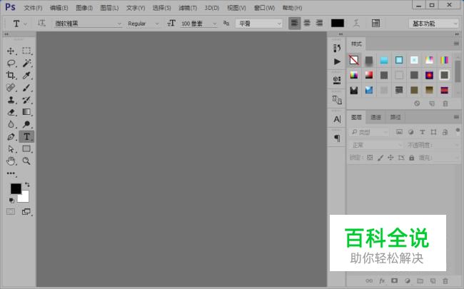 打开ps软件之后,我们新建一个画布(选择文件-新建或者是快捷键Ctrl+N都是可以的),小编就新建了一个800*400的画布给大家做示范。