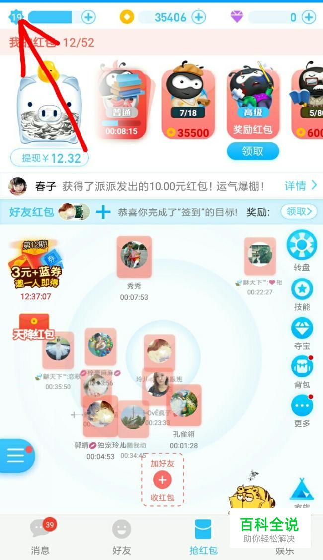 通过提升人物等级提高声望值:在“抢红包”页面的左上方显示自己的等级,如图所示是19级,当等级旁边的经验条长满后就会提升一级,每提升一级都会提升声望值。