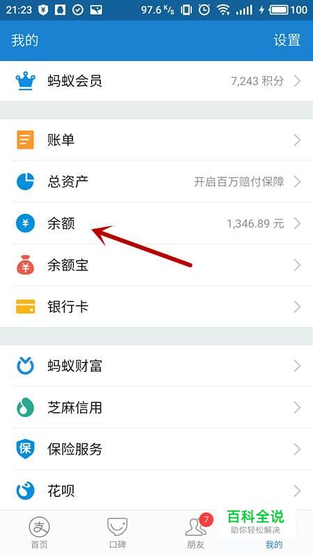 进入余额界面,选择“提现”