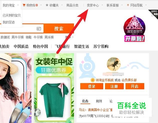 首先进入淘宝官方网站后点击卖家中心。